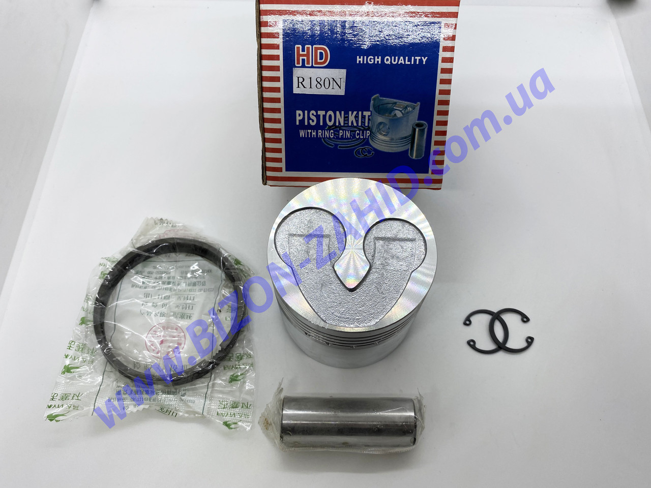 Поршень R180 З виїмкою під клапана Набір: поршень; палець; стопорні кільця; кільця поршневі. Стандартна деталь заводського виробництва, виготовлені з дотриманням всіх норм і допусків. Використовується на мотоблоки з вод... Читати далі...
